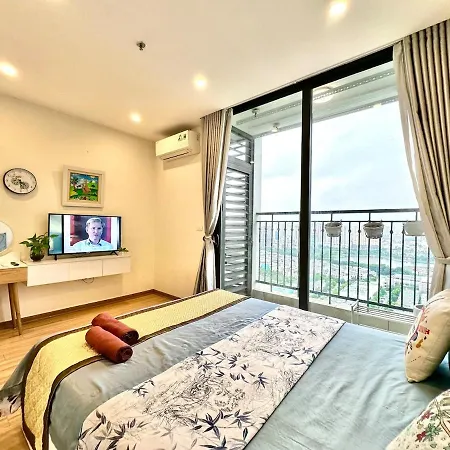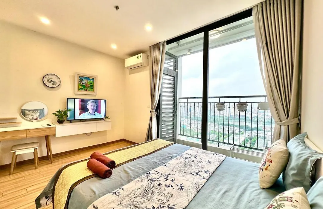 W 1-pokojowym Beautiful Studio Apt In Vinhomes Green Bay, Quick To Airport Goście mają do dyspozycji patio, balkon i garderobę z klimatyzacją. Dla większej wygody w obiekcie noclegowym dostępne są bidet i umywalka. Ponadto w łazience znajduje się suszarka, ręczniki i kapcie.